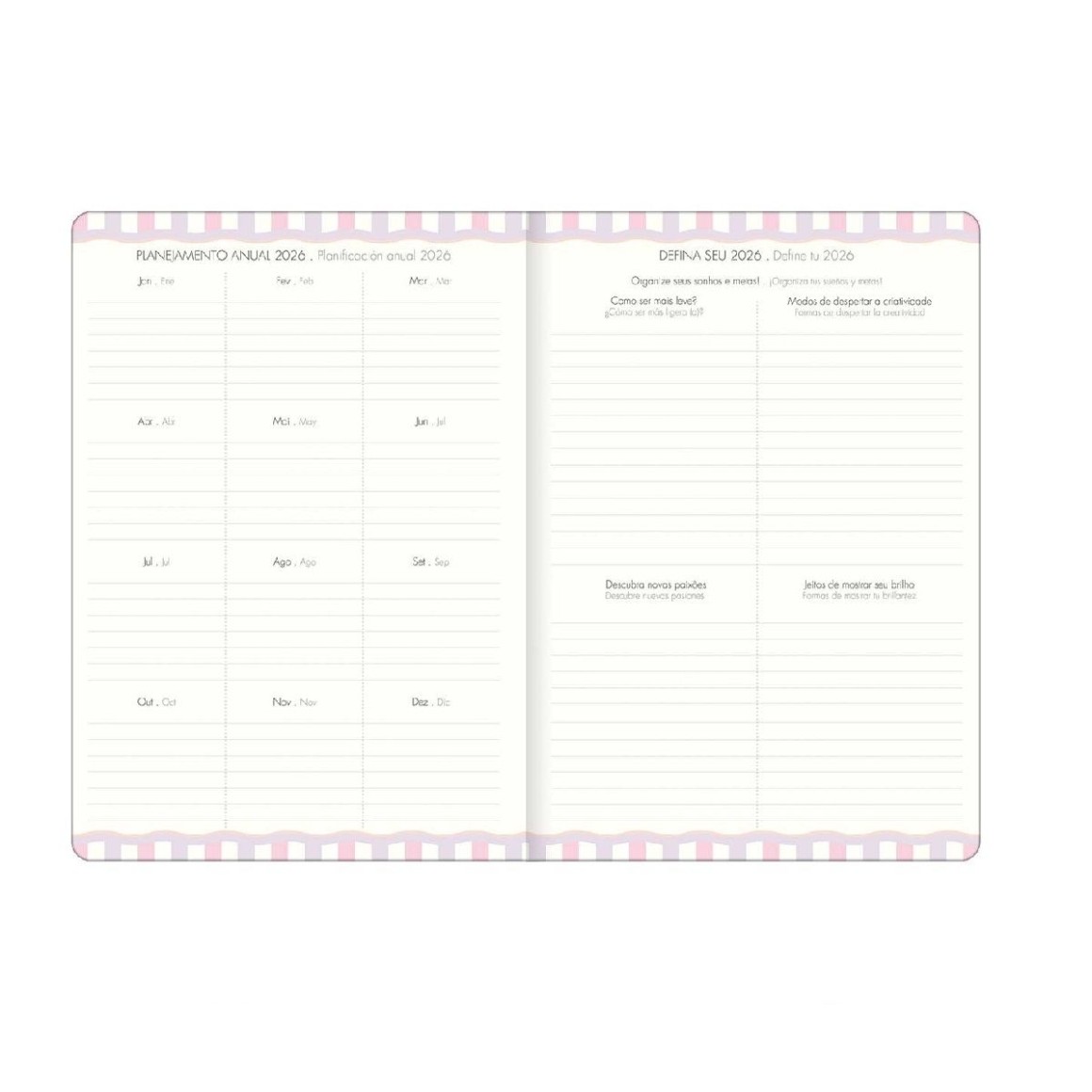 Conteúdo: Controle de hábitos, Controle financeiro, Listas, Metas e objetivos e Página para planejamento do futuro