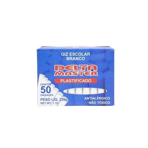 GIZ ESCOLAR PLASTIFICADO BRANCO 50 UNIDS DELTA MASTER