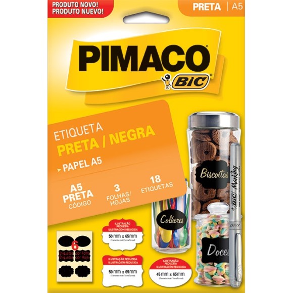 PAPEL A5 ETIQUETA PRETA ESPECIAL 18 UN 3 FOLHAS PIMACO