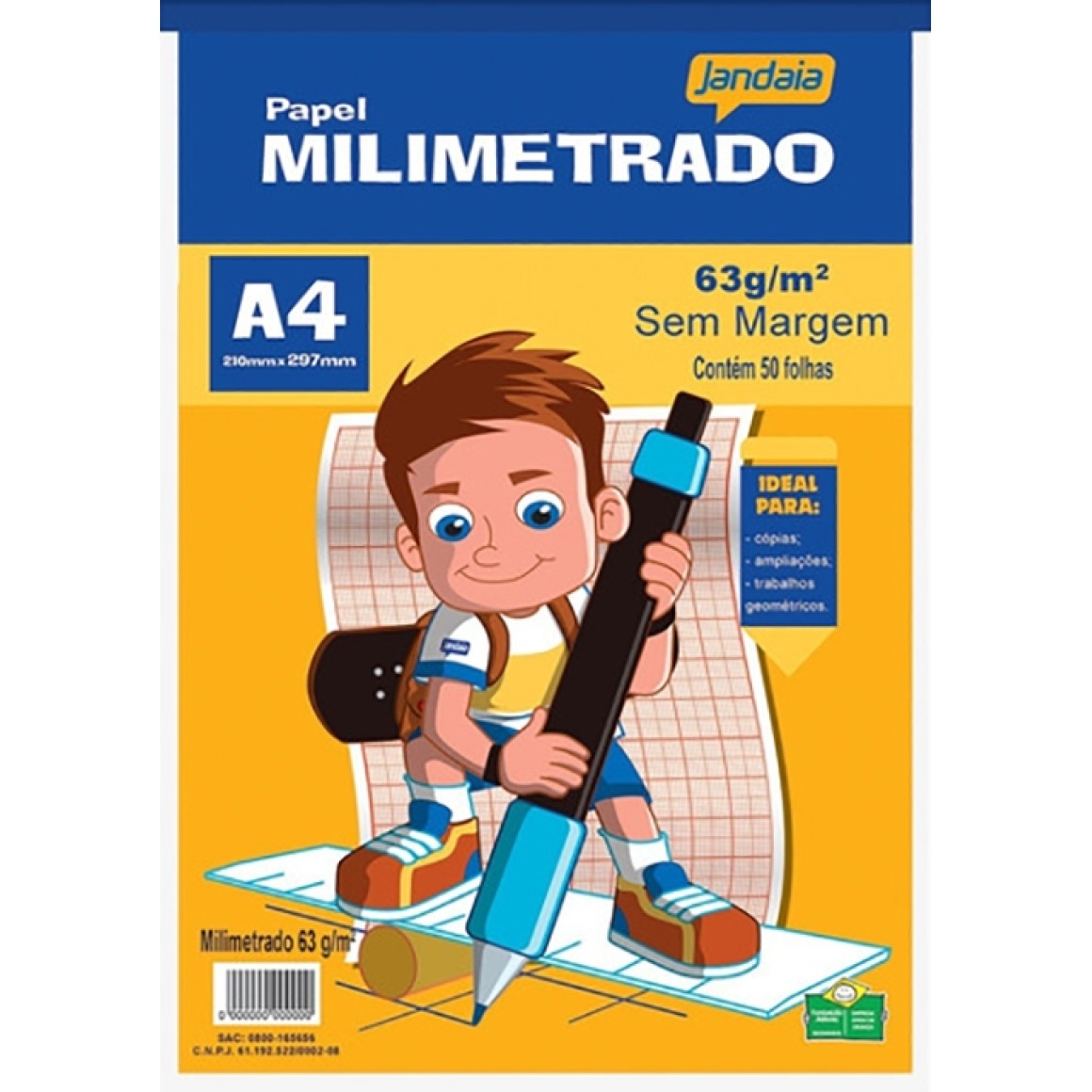 BLOCO DE PAPEL MILIMETRADO A4 SEM MARGEM C/ 50 FLS JANDAIA