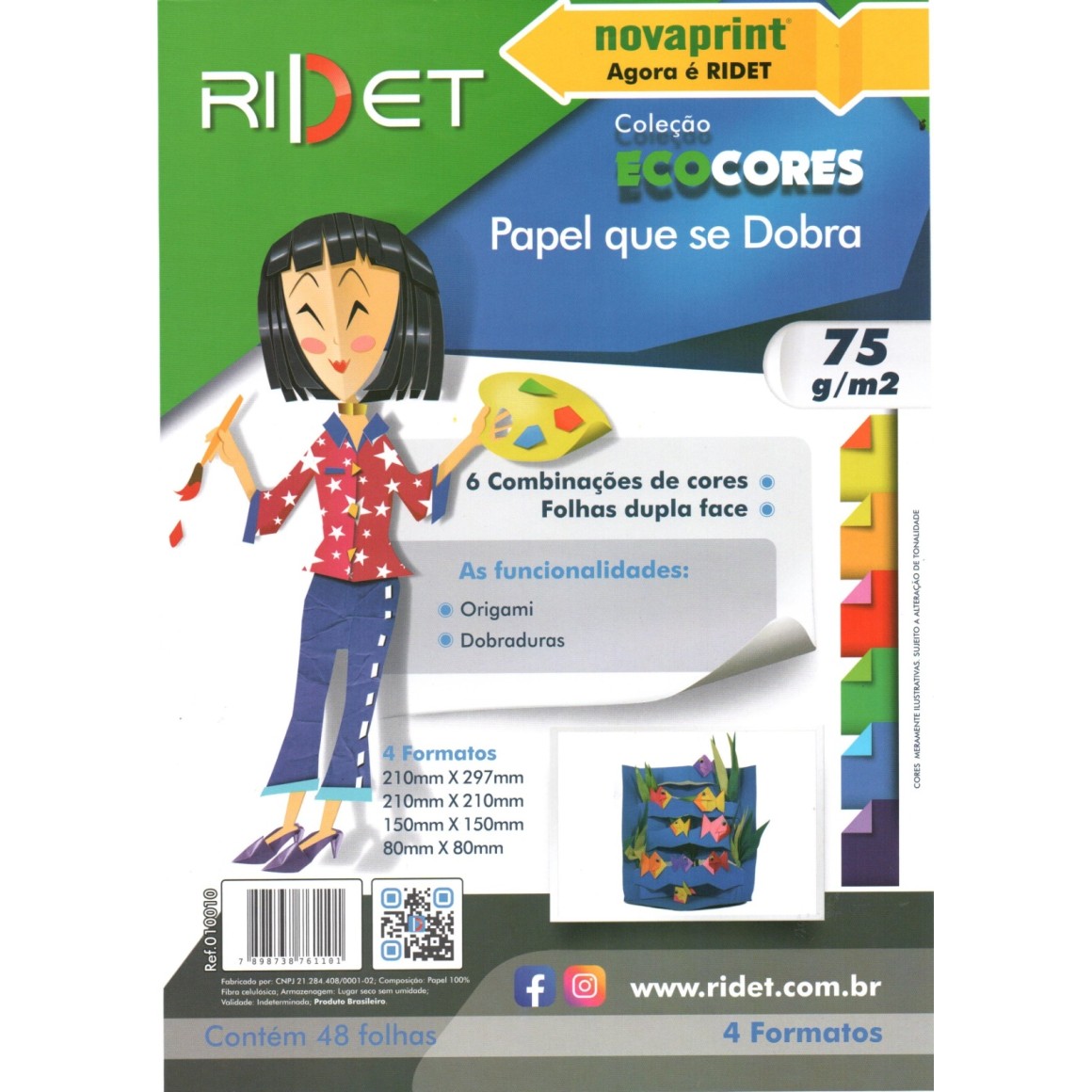 ECOCORES PAPEL QUE SE DOBRA ORIGAMI 6 CORES 75G 48FLS RIDET