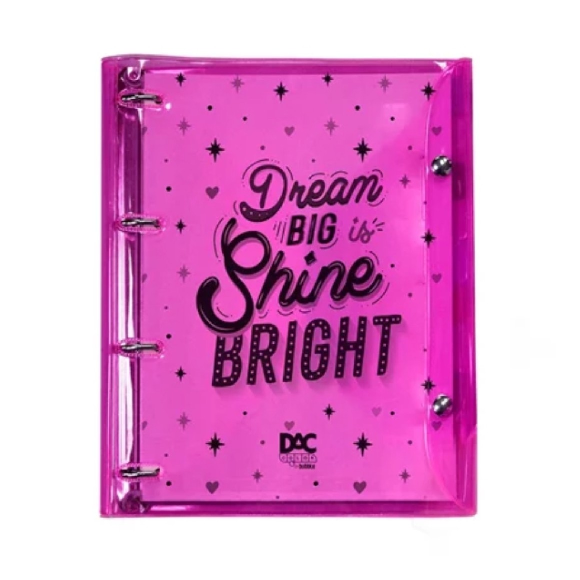 Os produtos DAC Color Bubble são vibrantes e tem um conceito mega estiloso. Ideal para estimular a criatividade nas atividades e movimentar o dia a dia para alcançar as metas e objetivos sem perder a alegria da jovialidade. Útil e charmoso, esse fichário foi feito para arrasar! Este fichário é um boa alternativa para quem quer o tamanho de um caderno, mas gostaria da versatilidade de inserir ou retirar folhas. As argolas articuladas abrem, possibilitando esta ação.