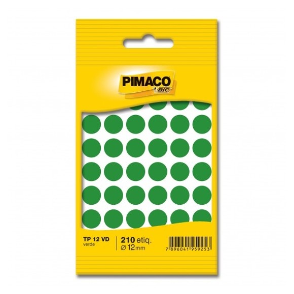 ETIQUETA ADESIVA TP 12 VD 210 UNIDS 12MM VERDE PIMACO