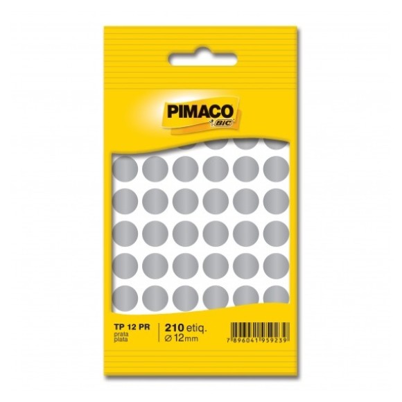 ETIQUETA ADESIVA TP 12 PR 210 UNIDS 12MM PRATA PIMACO