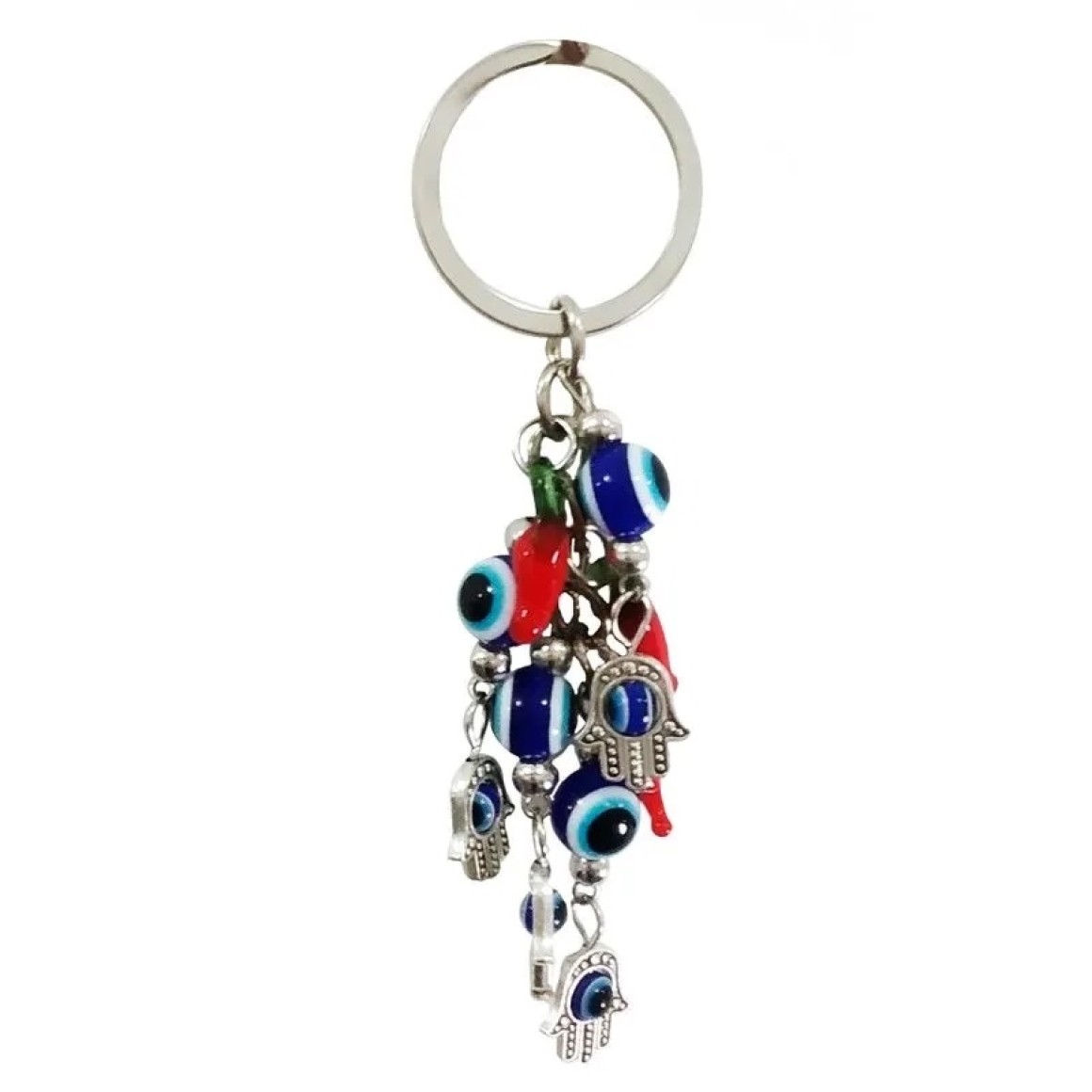 2. CHAVEIRO OLHO GREGO, MÃO DE FÁTIMA E PIMENTA METAL