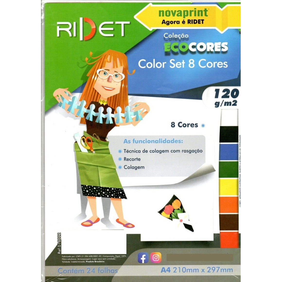 BLOCO ECOCORES CRIATIVO COLOR SET A4 120G 24 FLS 8C RIDET