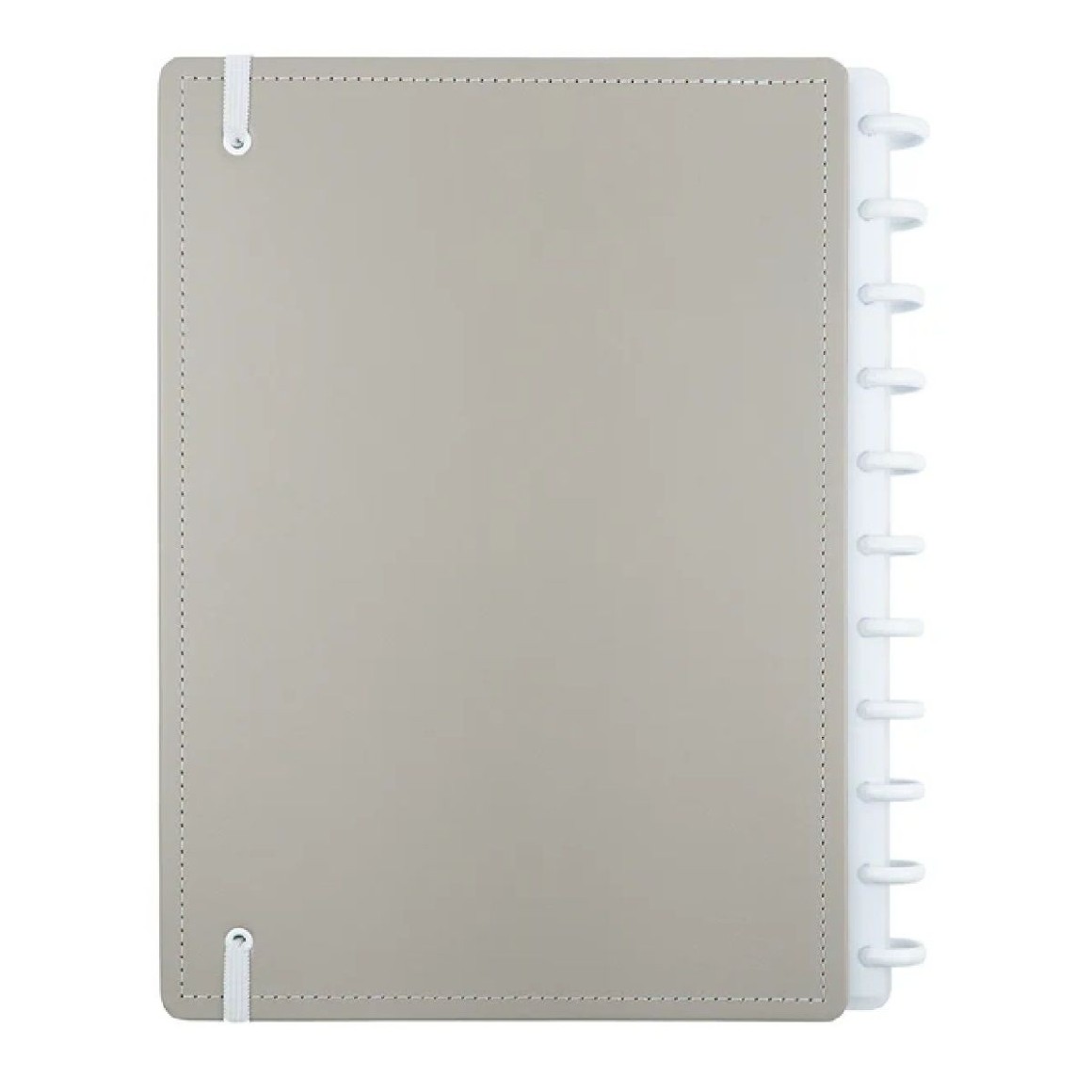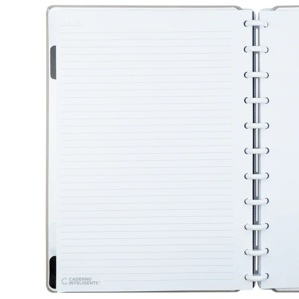 Capa e contracapa rígidas, 01 folha de adesivos, 01 bolsa plástica, 01 folha de instrução de uso e manuseio, com refis e acessórios da marca disponíveis no verso, 01 folha de identificação com calendário no verso, 04 divisórias com abas para identificação, 80 folhas offset 90g (60 folhas pautadas e 20 folhas lisas brancas para impressão), 01 suporte com elástico para 01 caneta ou 01 lápis e discos M + elástico.