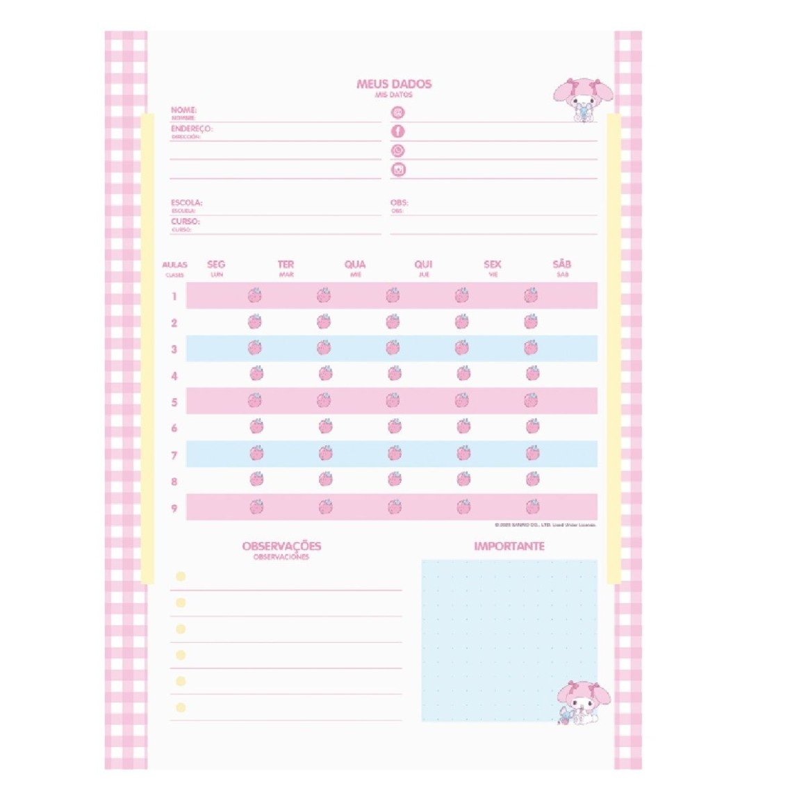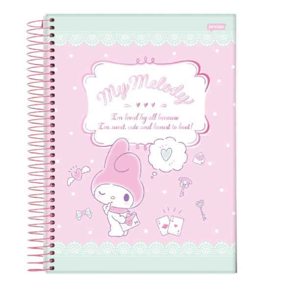 O Caderno Universitário My Melody possui capa dura, folhas pautadas e espiral. Ideal para o dia a dia na escola ou na faculdade.