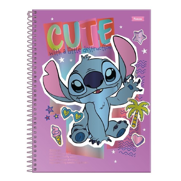 O Stitch (também conhecido como Experimento 626) é um dos personagens mais queridos e divertidos do universo da Disney. O Caderno Universitário Stitch busca retratar o personagem através de elementos, cores e frases que trazem em capas a essência do personagem.