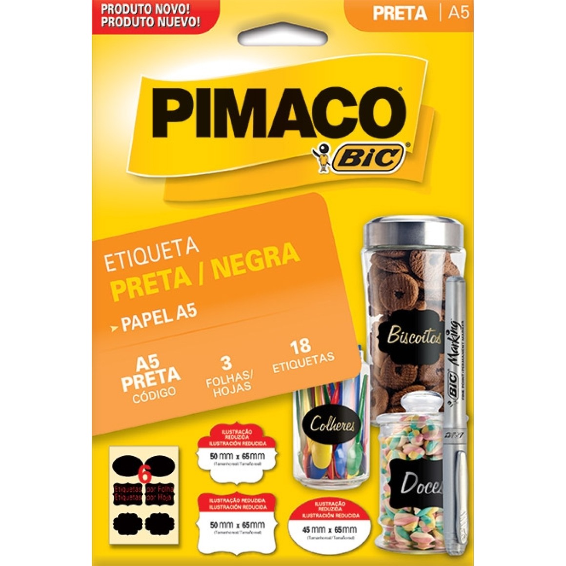 PAPEL A5 ETIQUETA PRETA ESPECIAL 18 UN 3 FOLHAS PIMACO