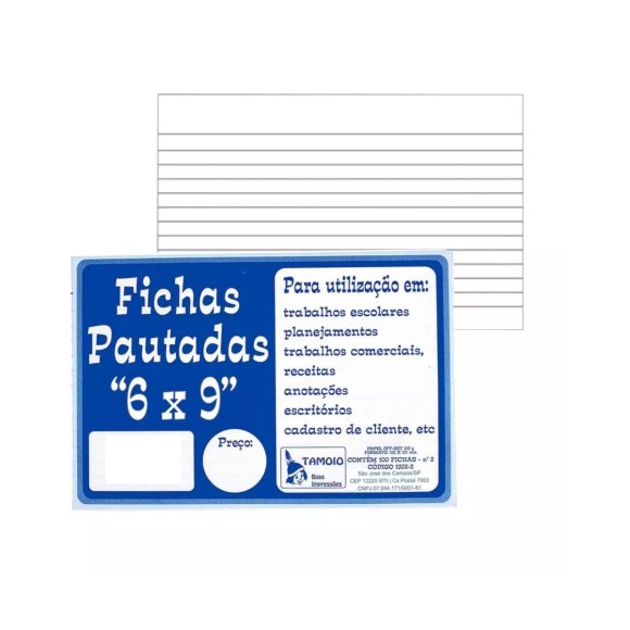 BLOCO DE FICHAS PAUTADAS 6X9 100 FLS TAMOIO