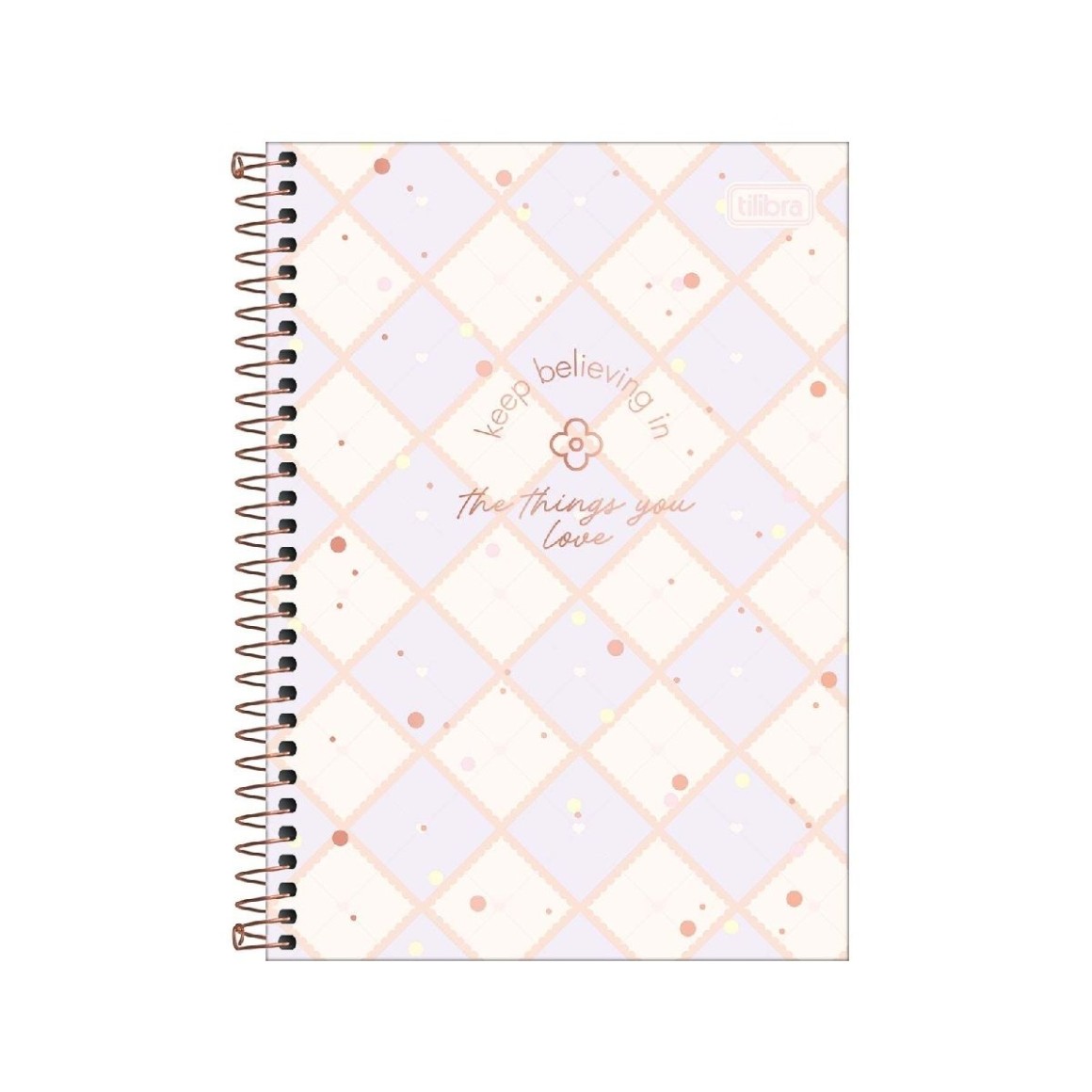 O Caderno Espiral Capa Dura 1/4 Soho 80 Folhas possui capa dura com detalhe metalizado, parte interna decorada, folhas pautadas decoradas e espiral colorido. Ideal para o dia a dia.