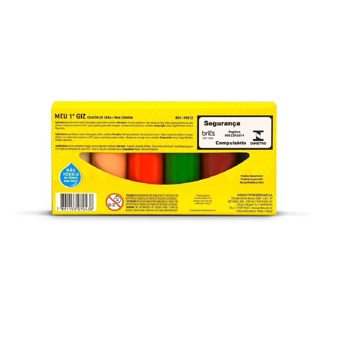 Meu primeiro giz foi desenvolvido especialmente pela Acrilex para auxiliar a coordenação motora das crianças. Fabricado com cera de alta qualidade, proporcionando total cobertura e excelentes traços, dando vivacidade nos desenhos. Seu formato anatômico, é ideal para uso na pré-escola e em trabalhos escolares, pois auxilia no desenvolvimento da coordenação motora e estimula a criatividade.