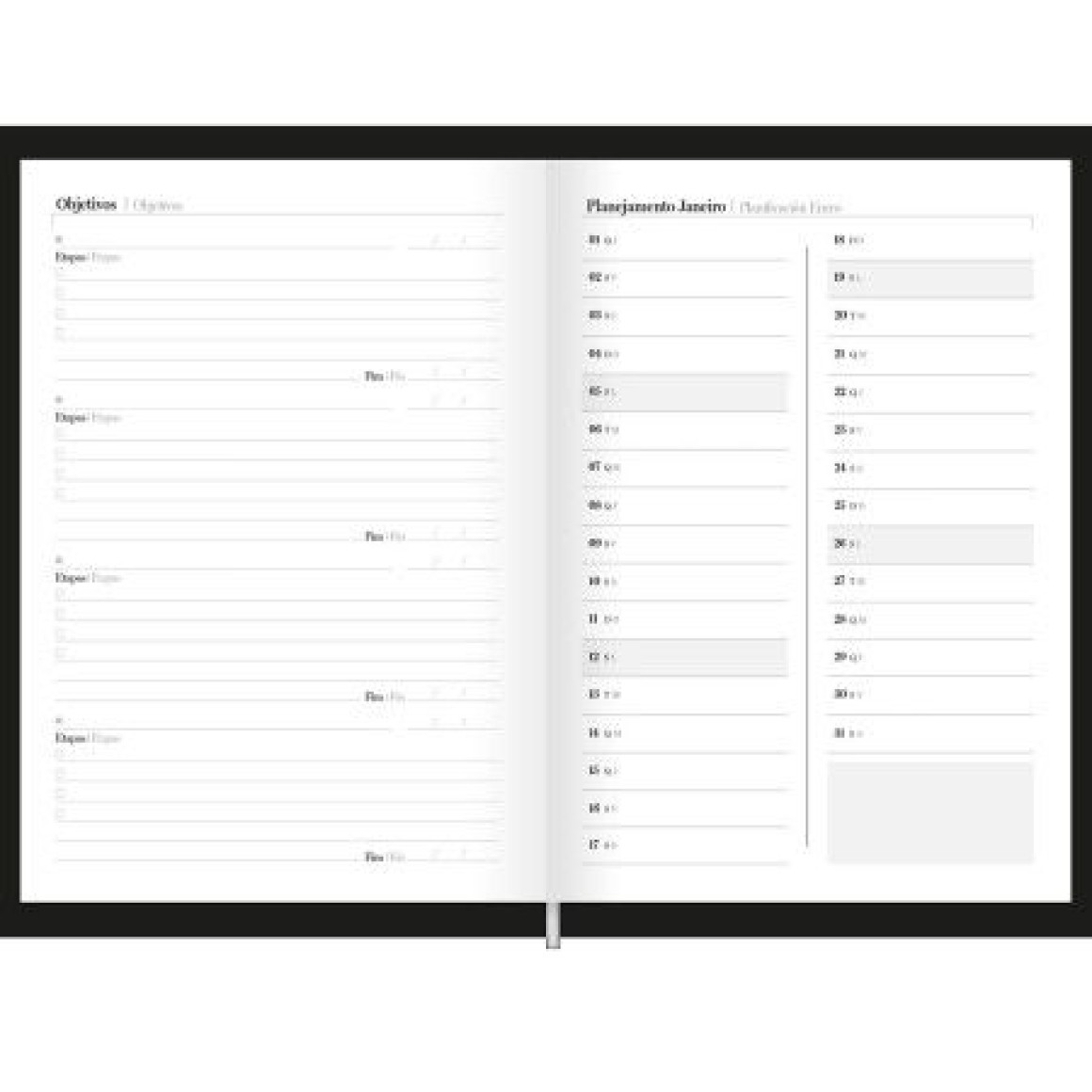 AGENDA COSTURADA COMPACTA PRETA FORONI