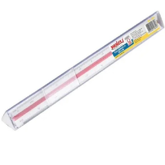 formato triangular, na qual possui 6 Réguas com diferentes escalas.