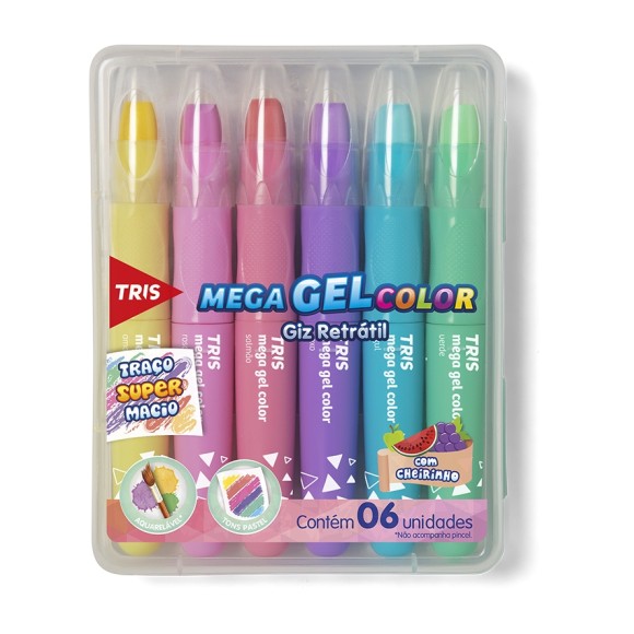 2. GIZ DE CERA RETRÁTIL MEGA GEL COLOR 6 CORES PASTEL TRIS