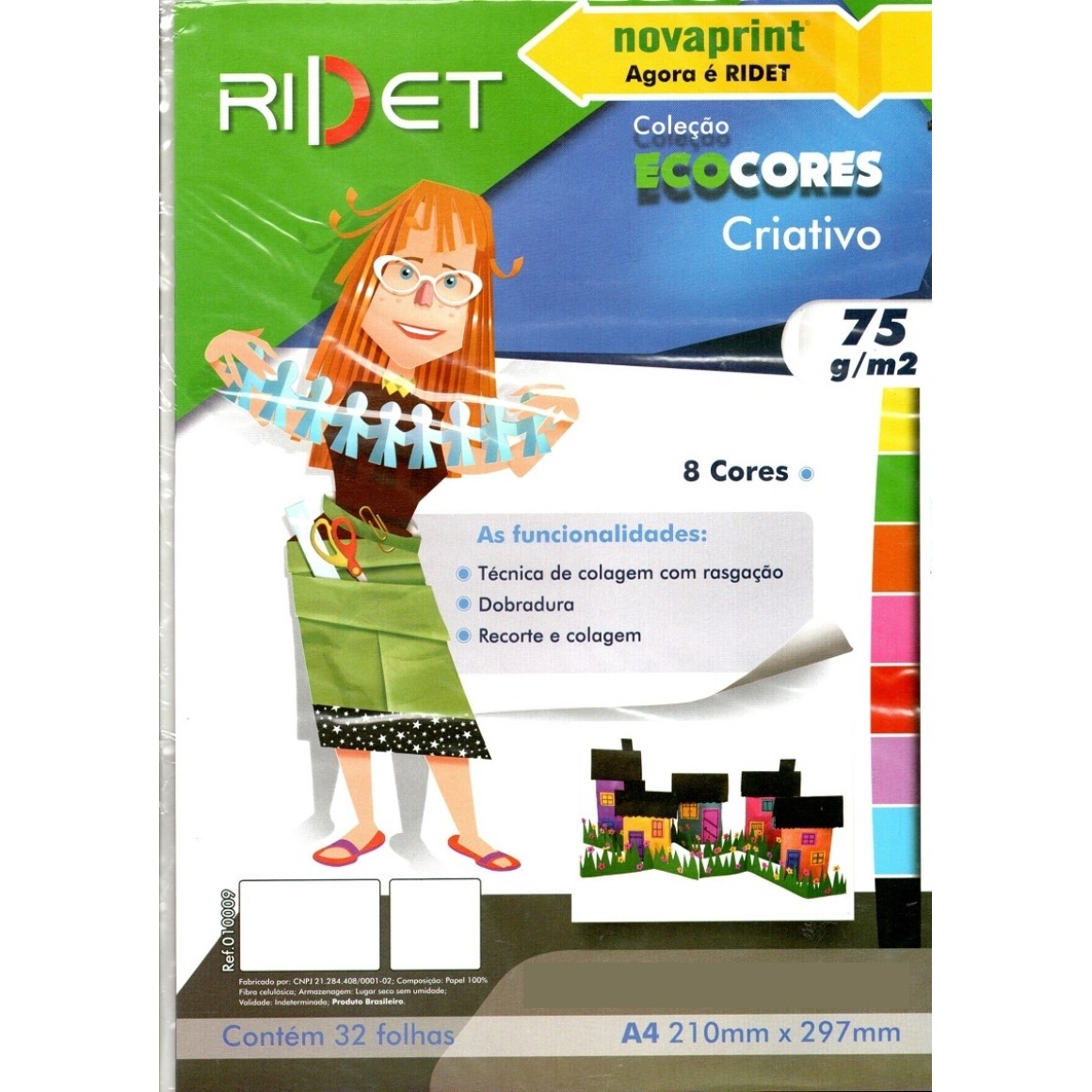Bloco ecocores criativo 75g - 210x297mm - 32 folhas com 8 cores - Ridet