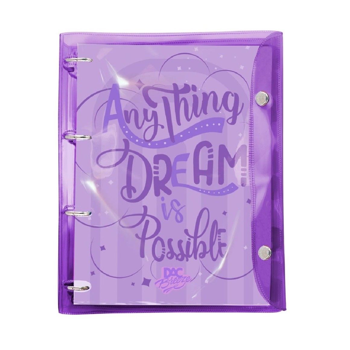O Fichário Breeze é encantador e o item perfeito para ter foco. Ideal para estimular a organização dos estudos diários e alcançar as metas e objetivos sem perder a motivação. Cheio de versatilidade ao inserir ou retirar folhas, pois as argolas articuladas abrem, possibilitando esta ação. Útil e estiloso, foi feito para arrasar! Pronto para escola ou faculdade.