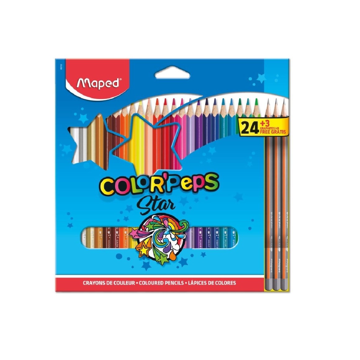 LÁPIS DE COR TRIANGULAR COLOR'PEPS 24 CORES + 3 LÁPIS MAPED